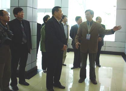 10月28日上午,国务院南水北调办公室主任张基尧一行在副校长鞠平、吴远、朱跃龙的陪同下来到国家重点实验室,受到实验室常务副主任彭世彰、副主任谭恩龙、刘凌的热烈欢迎,在实验室负责人的陪同下,张主任一行参观了实验室,彭世彰、刘凌、朱伟、王慧敏教授分别向张主任汇报了各自开展的研究工作。 陪同张主任前来的有国务院南水北调办公室总工程师汪易森、综合司司长蒋旭光、投资计划司司长刘春生等,在场的还有学校校办主任姚纬明、科技处处长赵坚。