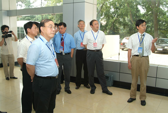 在我校“十五”“211工程”建设接受国家验收期间,以武汉大学校长刘经南院士为组长的专家验收组全体成员在张长宽校长、朱跃龙副校长的陪同下,考察了水文水资源与水利工程科学国家重点实验室。专家组听取了实验室常务副主任彭世彰教授的汇报,并观看了实验平台建设。