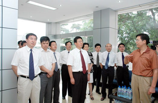 8月22日下午,安徽省马鞍山市市委书记、市人大常委会主任丁海中、市长姚玉舟、副市长陈苏汉、江苏大业有限公司董事长朱洪高在校党委书记林萍华、副校长吴远的陪同下来实验室参观。实验室常务副主任彭世彰向马鞍山市领导同志汇报了实验室的建设情况,随后马鞍山市领导在实验室常务副主任彭世彰、副主任刘凌的陪同下参观了各个实验平台。